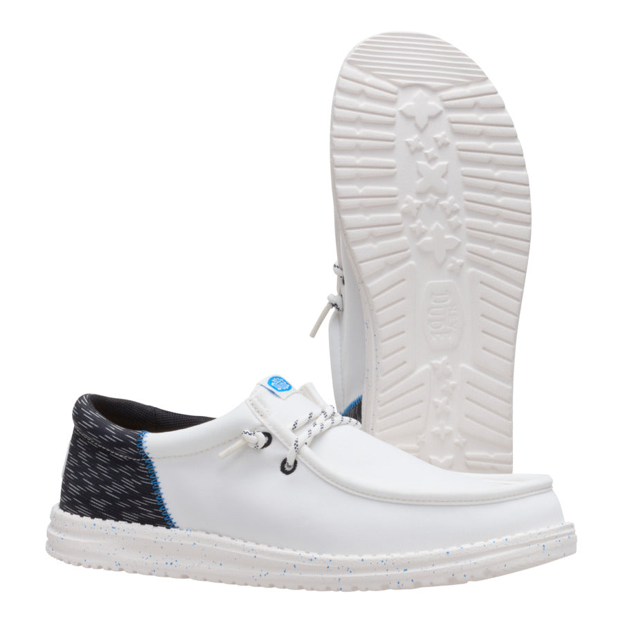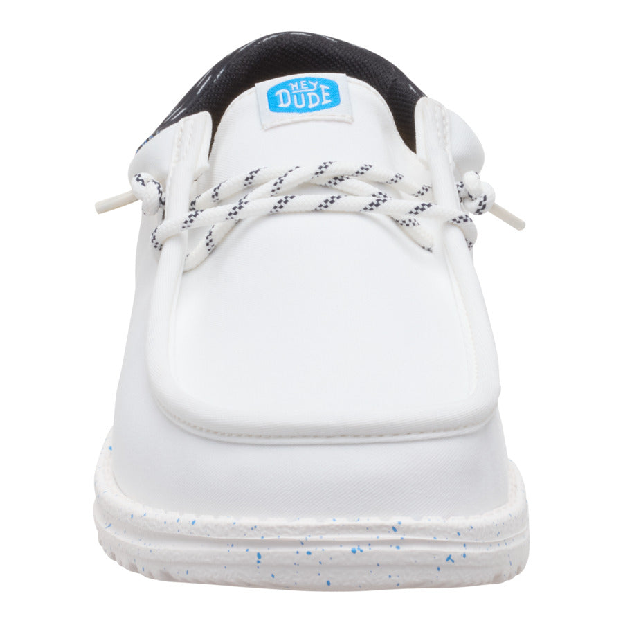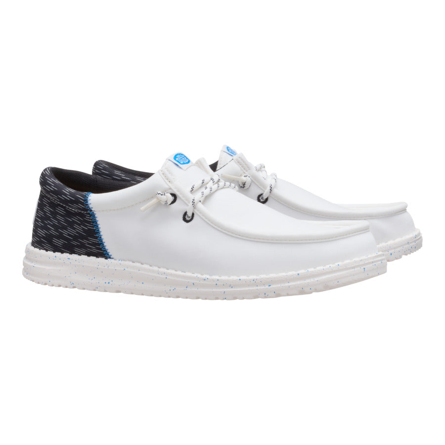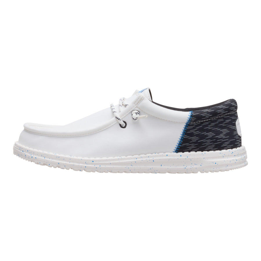 A little bit sophisticated. a whole lotta comfortable. These Wally Funk shoes have a jersey jacquard twill upper with some extra-special texture. Stretch laces and the HEYDUDE™ easy-on system make entry a breeze and the fit snug. The lightweight. flexible sole feels like floating. with some speckled detail just because.