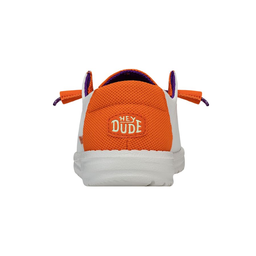 The Women’s Wendy now screams school spirit! Show your support for the Clemson Tigers in style with a unique design featuring the bold team colors. Made with signature HEYDUDE comfort. lightweight materials. and a slip-on design. these are perfect for all-day wear to bring you and your crew from the tailgate to the game.